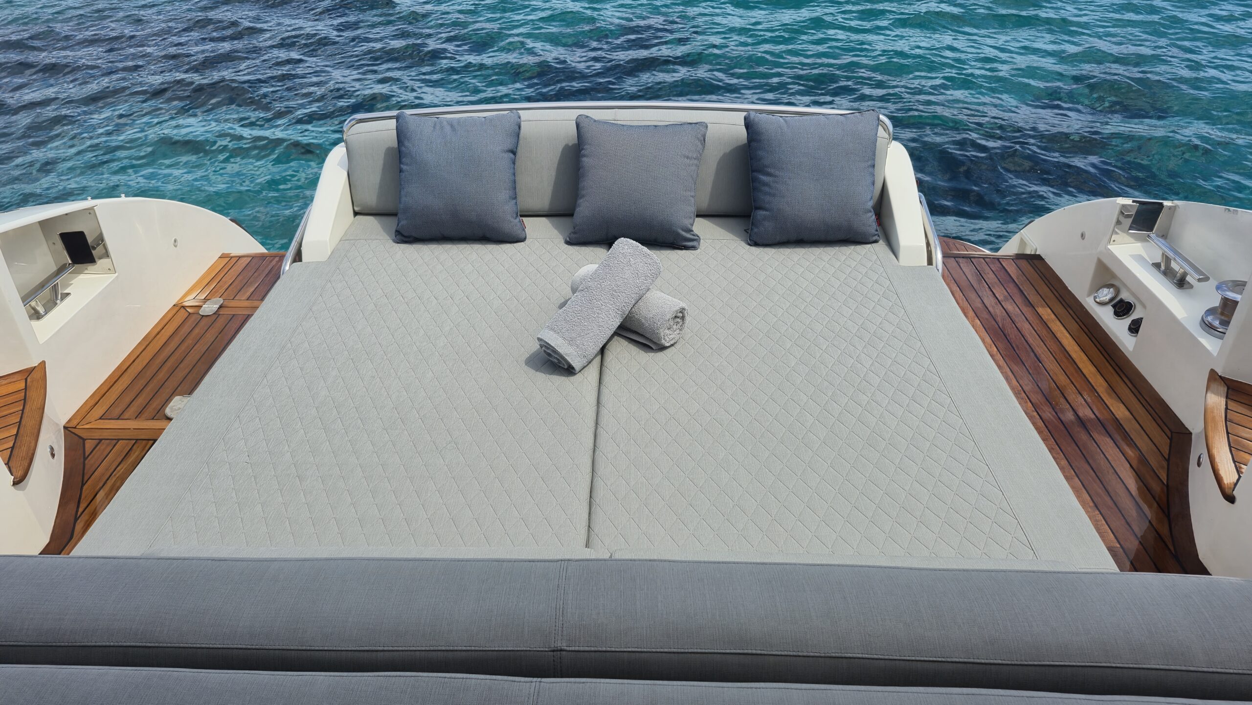 Con capacidad para 12 personas más tripulación, esta embarcación es perfecta para navegar con amigos o familia. Sus 2 motores de 800 hp cada uno garantizan una navegación ágil y segura, mientras que su plataforma de baño sumergible, solárium y sistema de sonido bluetooth hacen de cada salida una experiencia inolvidable.