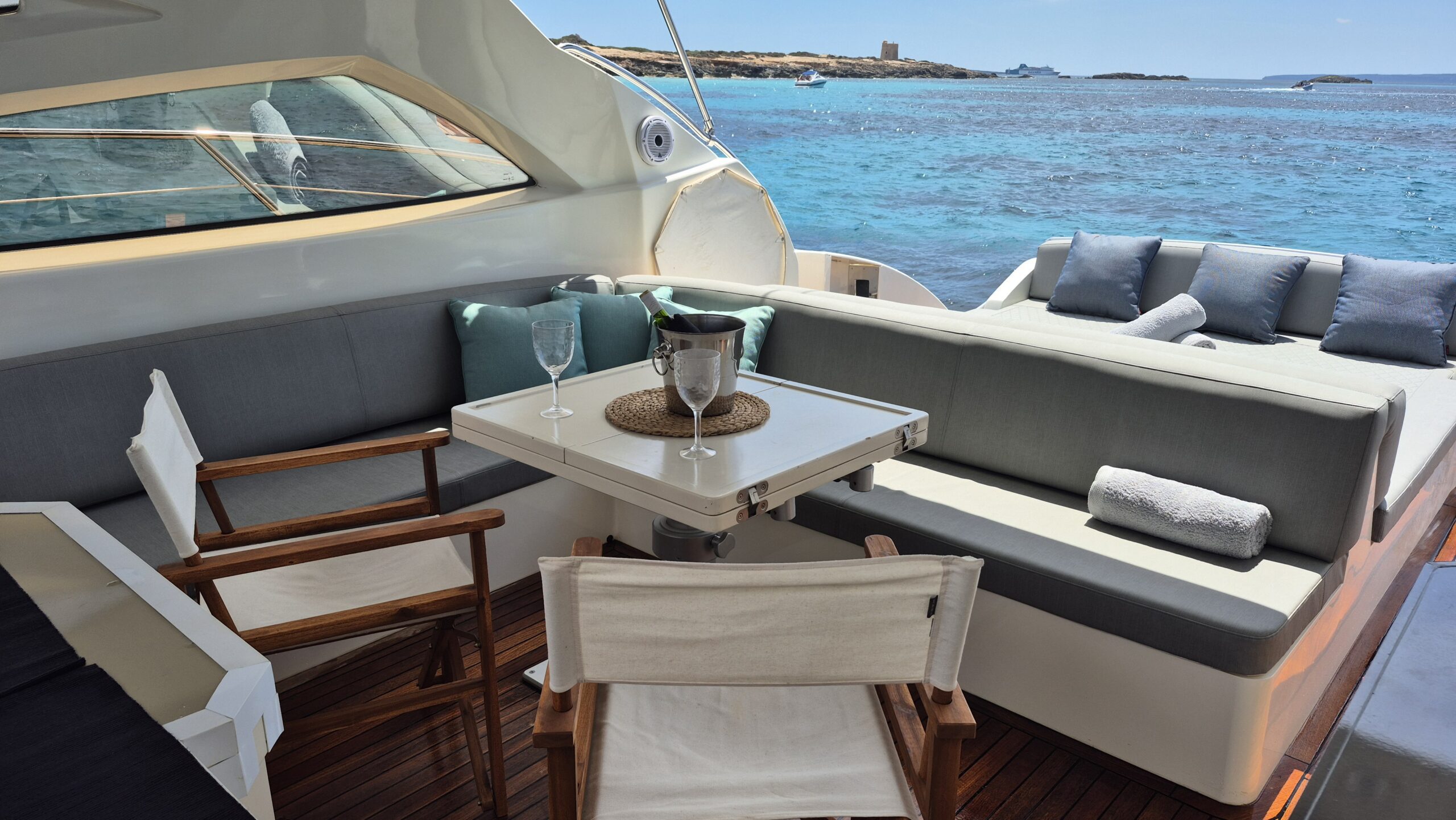 Equipado con tres baños, dos camarotes y extras como paddle surf, neveras eléctricas y atención personalizada, el Astondoa 53 es ideal para descubrir las calas más exclusivas de la isla con estilo y comodidad.