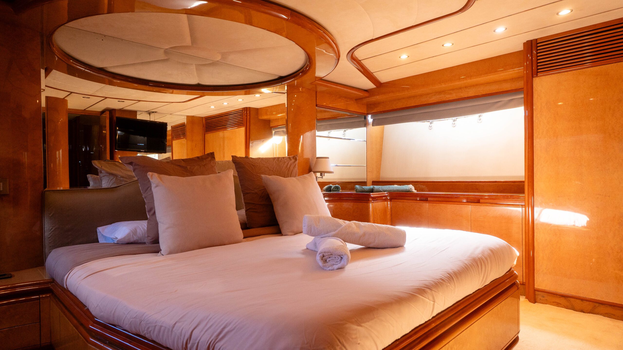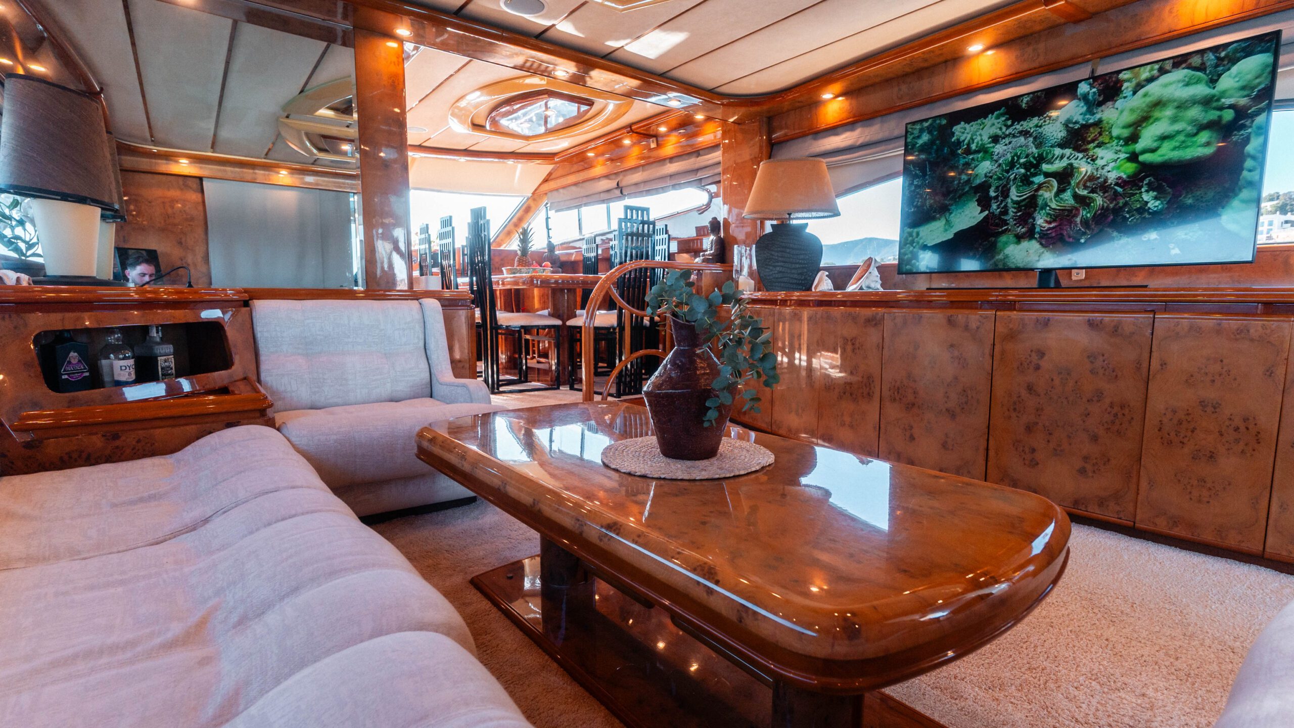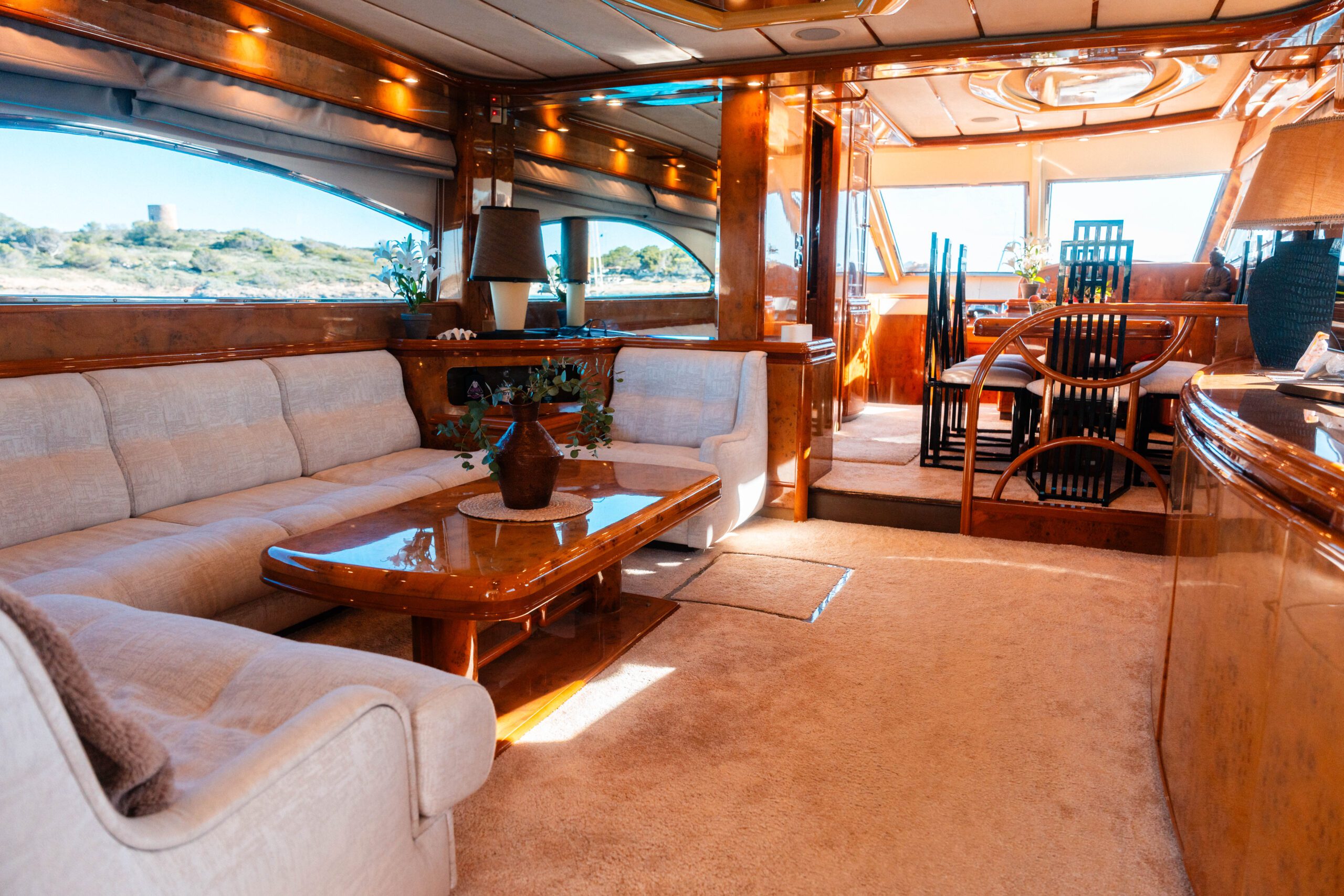 Este yate de gran eslora destaca por su diseño clásico y sofisticado, ofreciendo una navegación estable y silenciosa. Sus amplios espacios exteriores, como el flybridge con solárium y zona de comedor, invitan al relax bajo el sol mediterráneo, mientras que su interior, con acabados en maderas nobles y mobiliario de alto nivel, crea un ambiente cálido y exclusivo. Con capacidad para largas travesías y todas las comodidades a bordo, es la opción perfecta para quienes buscan confort, privacidad y distinción en cada milla náutica.