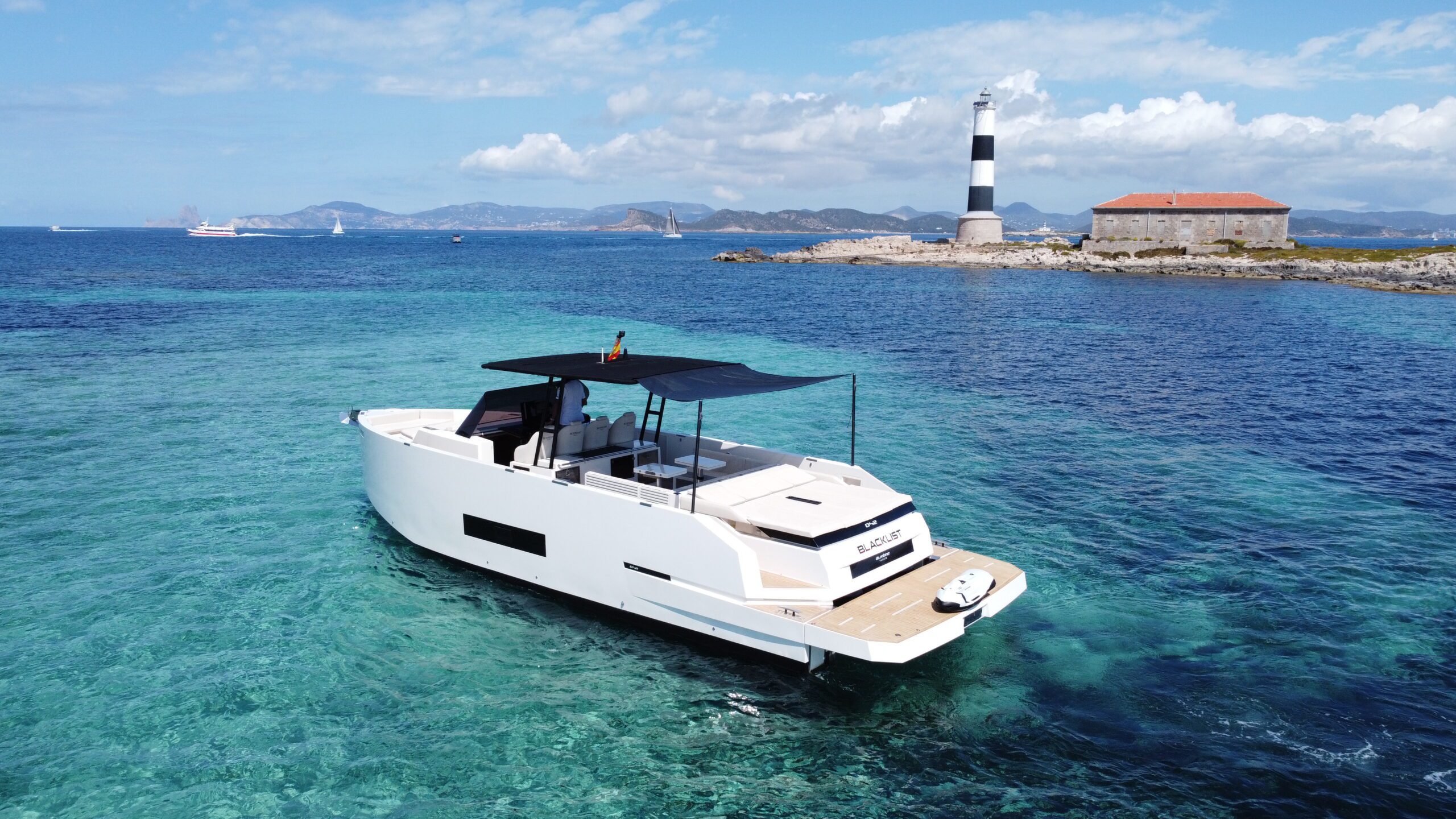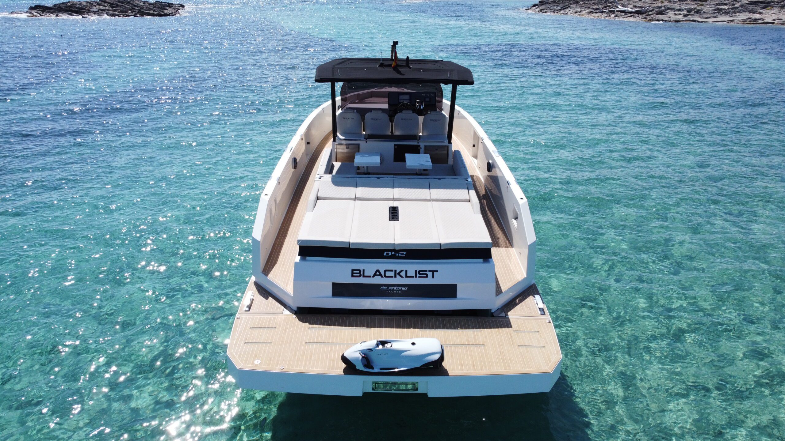 El D42 Open BLACKLIST es la opción perfecta para quienes buscan un barco con personalidad, potencia y diseño contemporáneo. Su estética deportiva y elegante se complementa con prestaciones técnicas de primer nivel, ofreciendo una navegación ágil, estable y emocionante en las aguas de Ibiza.
